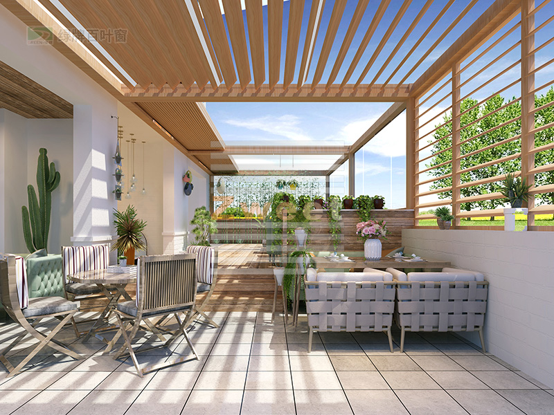 綠牌頂面遮陽(yáng)防雨百葉系統(tǒng)用于露臺(tái)遮陽(yáng),設(shè)計(jì)簡(jiǎn)約,美觀實(shí)用,通過調(diào)節(jié)頂面的百葉系統(tǒng),起到很好的遮陽(yáng)防雨效果。