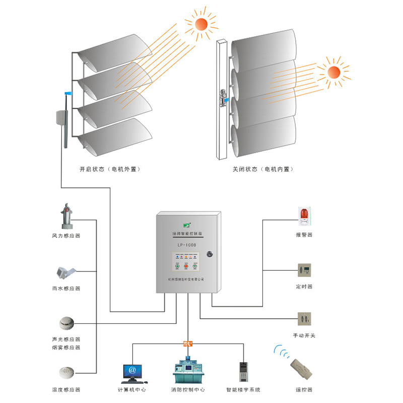 綠牌消防排煙控制系統(tǒng),可根據(jù)光線強(qiáng)弱、風(fēng)向變化、雨量大小、煙霧濃度、溫度高低等自動(dòng)調(diào)節(jié)百葉角度,可實(shí)現(xiàn)通過網(wǎng)絡(luò)、電話多層次立體控制。 在不同季節(jié)、時(shí)間為您提供最佳的室內(nèi)工作、生活環(huán)境。